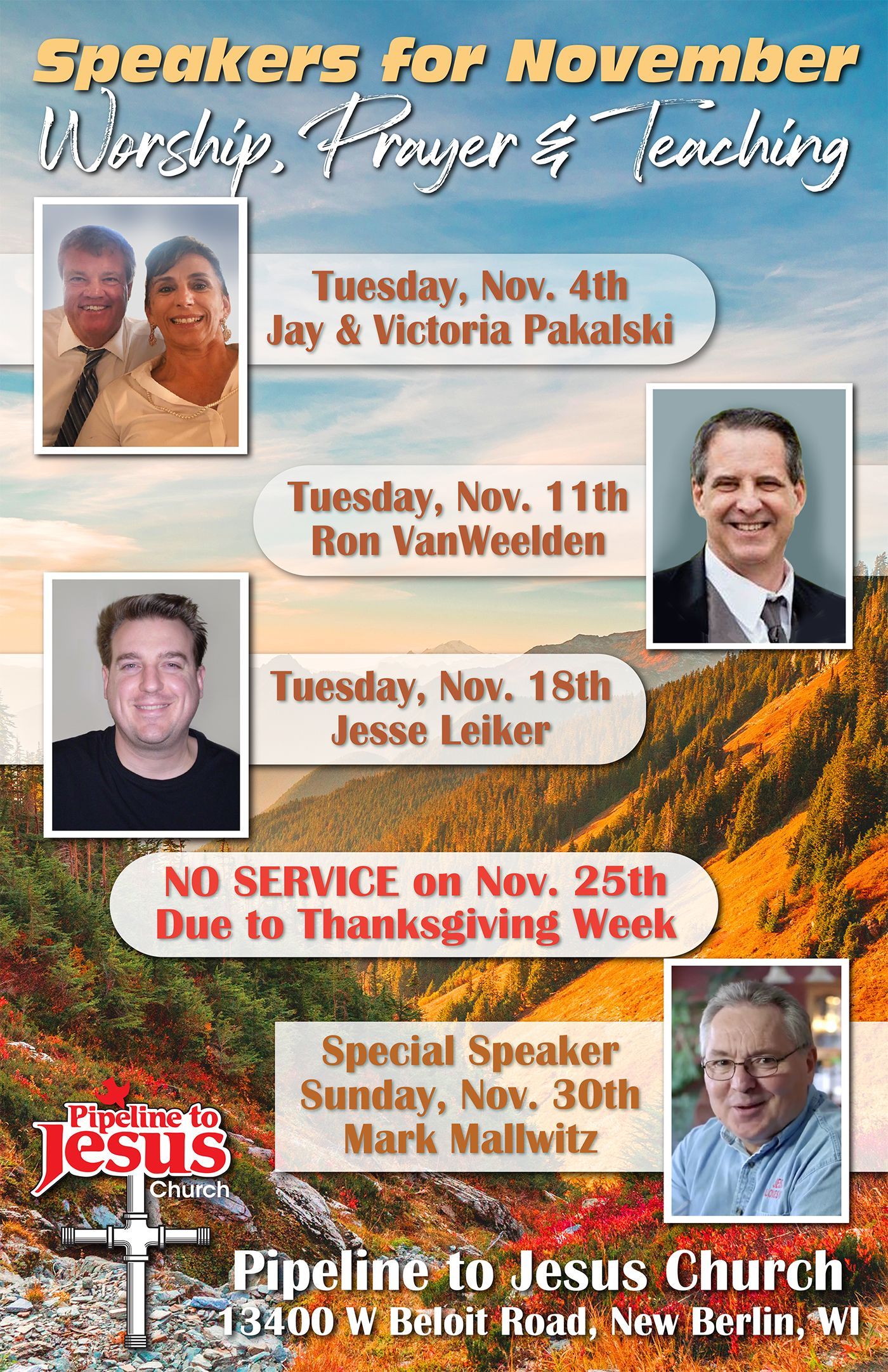 Tuesday nights at Pipeline To Jesus Church are filled with inspiration and connection. Experience special guest speakers, fresh perspectives, and heartfelt worship as we come together in a welcoming community of love and faith.
